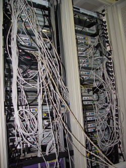 ▲ 깔끔한 앞면에 비해 수많은 선들이 복잡하게 뒤엉킨 뒷면(자칫 잘못해서 전원 하나 빠지면 서버가 그대로 멈춰버리는 불상사가 일어날수도 있다) |