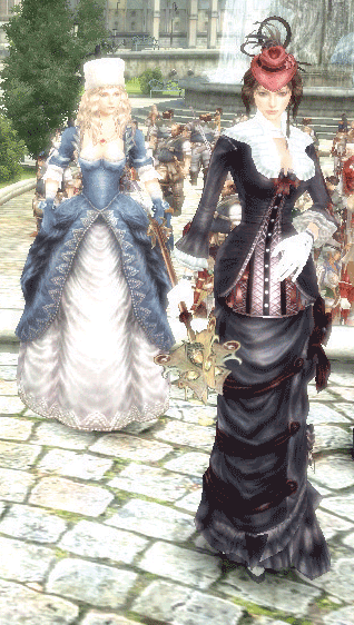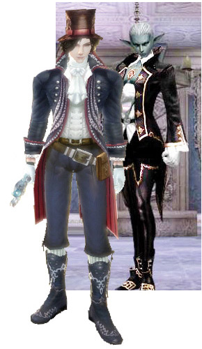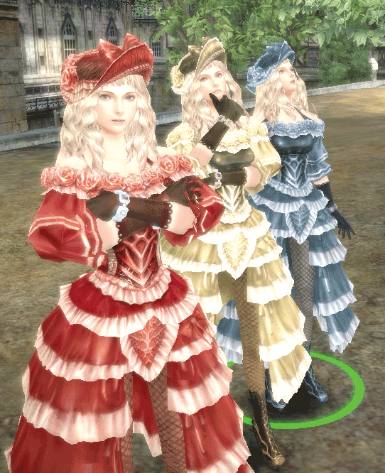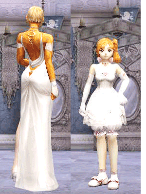 전사의 강인한 이미지와는 달리 차분하고 여성적인 느낌이 묻어나는 ‘홀터 드레스’를 입고 있는 <리니지 2>의 캐릭터로군요. 홀터 드레스는 목에 포인트를 주고 어깨와 등을 노출시킨 드레스로, 칵테일 파티나 이브닝 파티, 또는 시상식과 같이 점잖은 자리에서 주로 선택하는 의상입니다. 사진에서는 잘 보이지 않지만 스커트의 왼쪽에 ‘슬래시(천을 깊게 잘라 피부를 노출시켜 포인트를 주는 것)’를 줘서 섹시함을 강조합니다. 전사와는 달리 귀여움으로 승부하는 드워프는 ‘드로워즈’가 눈에 띄는 아이템이군요. 드로워즈는 짧은 스커트를 입을 때 보온이나 타인의 눈을 피하는 용도로 착용하는 속바지로, 패티코트처럼 실루엣을 살려주는 효과도 있습니다. 속옷이긴 하지만 밑단에 레이스나 프릴로 장식되어 있어 스커트 밖으로 보이게 입기도 하는데, <리니지 2>의 드워프가 그런 경우죠.