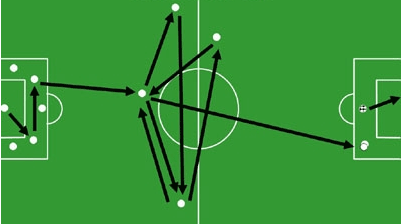 빗장수비는 미드필더와 수비진이 두껍게 포진하면서 마지막에 스위퍼(빗자루)가 있는 것이 특징입니다. 보통 1-4-3-2나 1-3-4-2또는 1-3-2-4로 진형으로 짜여지는데 여기서 중요한 것은 미드필더와 수비진에 있습니다. 이들은 공을 가지고 경기장의 허리부분에서 롱패스로 공격수에게 공을 이어줄 뿐 직접 공격에 가담하는 일은 많지 않습니다.