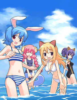 발랄하고 활동적인 토끼는 파란 줄무늬로 시원함을 강조했고, 참하고 얌전한 성격의 양의 수영복은 얌전함과 수수함이 미묘한 매력을 발산한다는 일본 여학생들의 학교 수영복과 흡사한 디자인입니다. 귀엽게 말린 뿔과 양갈래 핑크색 머리가 딱 어울리는 차림이죠. 지적인 여우는 스쿠버 다이버를 연상시키는 진한 검은색 수영복에 깔끔하게 노란 선으로 포인트를 주었습니다.