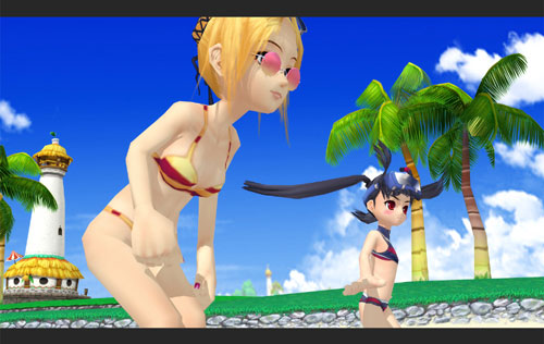 그렇다면 비키니란 오로지 몸매가 탱탱한 누님만을 위한 것인가 하면 그렇지도 않습니다. ‘풍만하게 도드라진 가슴, 늘씬하게 뻗은 다리, 매끄러운 허리선 따위가 다 뭐냐. 난 오로지 귀여운 것을 사랑한다’는 분들을 위해서 온라인 게임 팡야의 깜찍한 캐릭터들도 비치발리볼을 합니다.
