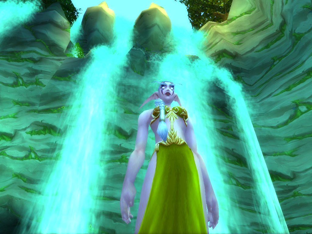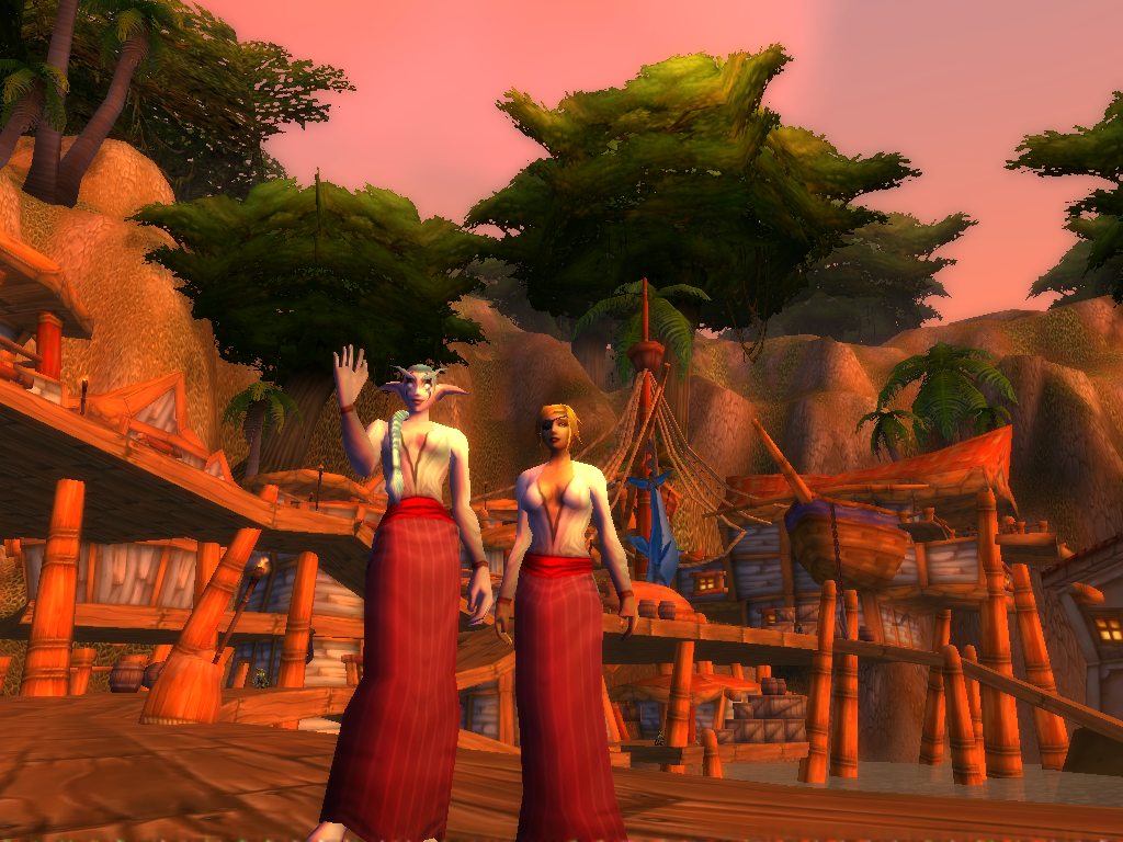 월드 오브 워크래프트의 엘프는 남국풍의 긴 랩 스커트에 달라붙는 긴팔 상의를 선택했지만 하늘하늘 해 보이는 재질과 과감한 브이넥으로 전혀 더워 보이지 않습니다. (단순히 얼굴이 무서워서 인지도 모르지만)