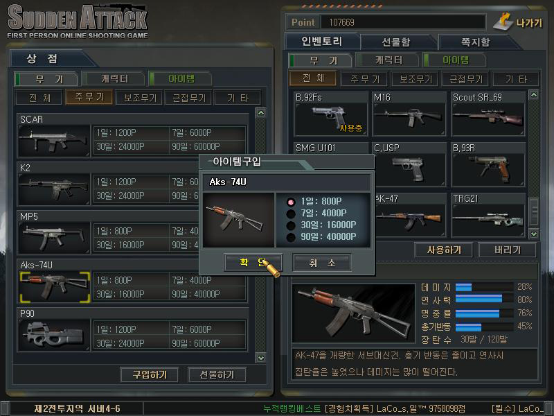 접속하게 되면 가장 먼저 상점에서 무기를 구입해야 한다. 총기의 종류는 크게