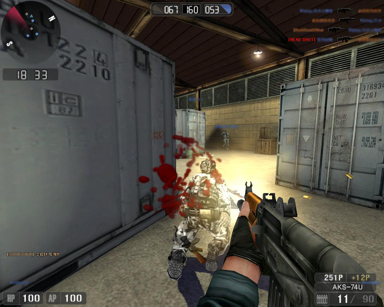 상체 중에서도 특히 머리 부위를 정확히 맞출 경우 ‘HEADSHOT’이라는 영어 음성과 함께 붉은색 메세지가 화면 우측 상단에 사살한 게이머의 아이디와 함께 표시된다. 이 헤드샷을 자주 띄워는 것이야말로 고수로 가는 지름길. 이것은 상당한 중독성을 보일 정도로 짜릿한 타격감을 준다(심장약한 사람들은 다소 잔인한 장면이 연출될 수 있으므로 '옵션-기타'에서 혈흔 효과를 꺼주는 것이 좋을지도 -_-).