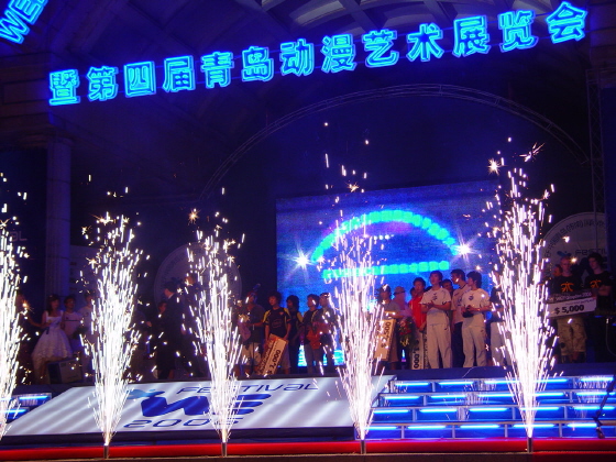 저녁 7시, 드디어 야외 경기장에서 WEF2006의 화려한 막이 올랐습니다. 정청래 의원 내외와 중국 청도시 우충 부시장 등 행사를 축하하기 위해 많은 정계 인사분들이 자리에 참석했죠. 모두들 e스포츠의 발전을 위해 정말 하실 말씀이 많으셨는지 아주 긴~ 연설을 해주셨습니다. 작년 WEF2005에서 전종목 우승을 차지한 한국은 이번에는 아쉽게도 스타크래프트 이외에 다른 종목에서는 부진을 면치 못했습니다. |