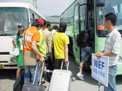 ▲ 버스에 올라타는 선수들. 3일 내내 버스 운전사의 과감한 역주행에 가슴 졸여야했다 |