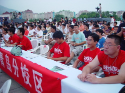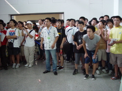 야외무대에서 저녁 7시부터 시작하는 본 행사 전에, 우선 박물관 내 행사장에서 조추첨과 스타크래프트와 워크래프트3 8강, 카운터 스트라이크 4강 1, 2라운드가 비공개로 진행됐습니다. 하지만 역시 중국팬들도 만만치 않더군요. 비공개로 진행되었음에도 불구하고 문 앞에는 중국팬들이 몰려들어 아수라장을 이루었죠. 특히 재밌는 건 여성팬들이 많은 한국에 비해 중국은 남성팬들이 대부분이었죠. 10대~20대 초반의 남학생들이 소리 지르며 환호하는 모습. 한국에서는 볼 수 없는 재밌는 광경이었습니다.