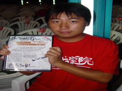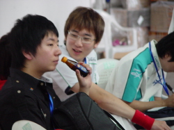 ▲ 중국팬에게 비타 500을 선물받은 마재윤 선수(행사장에 들어가지 못하는 중국팬에게 부탁받아 기자가 손수 건네주었다 -_-) |