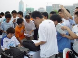 오전 10시 30분, 한국 프로게이머(스타크래프트 6명, 워크래프트3 2명, 카스 5명)들이 중국 칭타오 공항에 도착했습니다. 그런데 공항에 도착하자마 이상한 일이 벌어졌습니다. 중국 관계자들이 그 유명한(!!) 스타크래프트 프로게이머들은 본 척도 하지 않고, 워크래프트3와 카스 프로게이머들에게 몰려드는 것 아니겠습니까? 알고보니 중국에서는 워크래프트와 카스가 우리나라의 스타크래프트 만큼이나 인기가 높았던 거죠. 특히 워크래프트3의 장재호(MYM) 선수는 중국팬들의 열광적인 지지를 받으며 이 후에도 혹독한 사인공세에 시달려야 했습니다. |