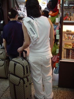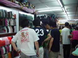 점심식사 후 기자는 스타크래프트 프로게이머들과 함께 중국의 유명한 짝퉁시장을 관광했습니다. 엄청나게 싼 가격의 짝퉁물건들을 접한 감독님들의 불타는 눈빛(딸린 식구가 많은 분들은 더더욱!)과 달리 선수들은 사고싶은 물건이 없는지 무덤덤한 모습을 보였습니다. 하지만 역시 기자가 선택한 삐까번쩍한 짝퉁 구찌 여행가방(180위안, 한화 18,000원)에 모두들 침을 흘리기 시작했고, 결국 홍진호 선수와 강민 선수까지 같은 가방을 사기에 이르렀죠(결코 그들을 짝퉁의 늪에 빠뜨릴 의도는 아니었습니다 -_-;;)