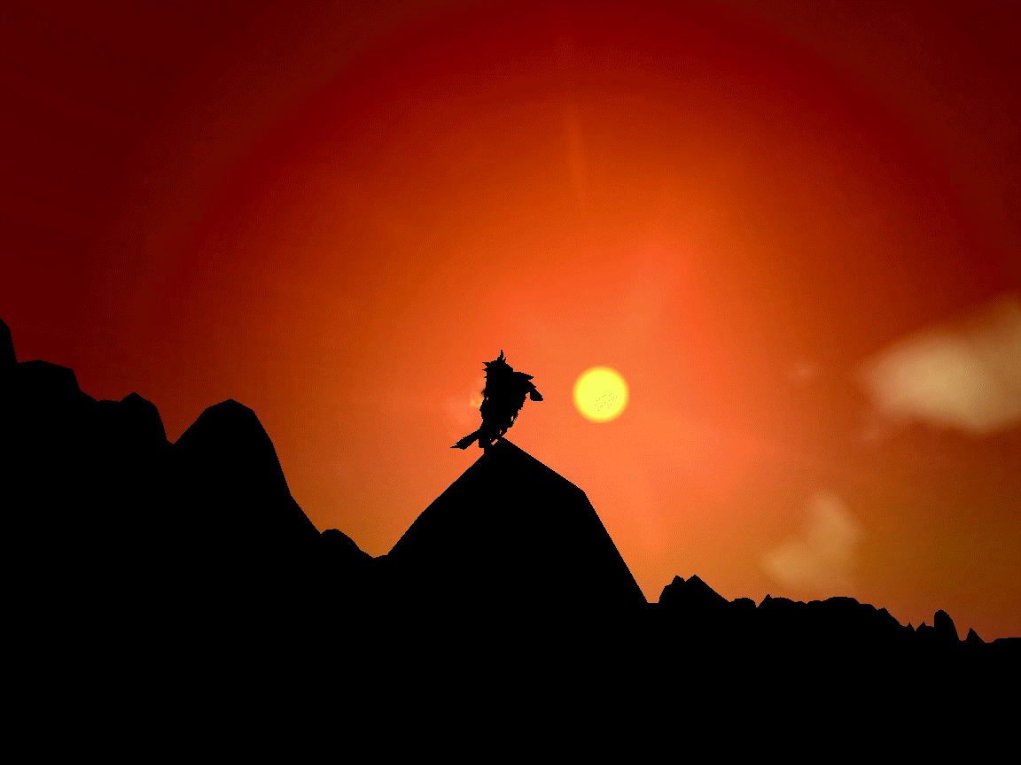ⓓ항구 앞에 캐릭터를 앉혀놓고 카메라 각도를 노을이 지는 태양쪽으로 맞춰둔 후, 그냥 모니터를 바라보고 있는다.