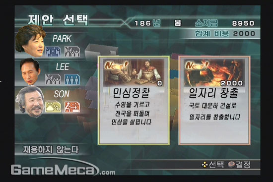 ▲ 29만원의 행복 시나리오는 '정치 매니저 2008'에서 |