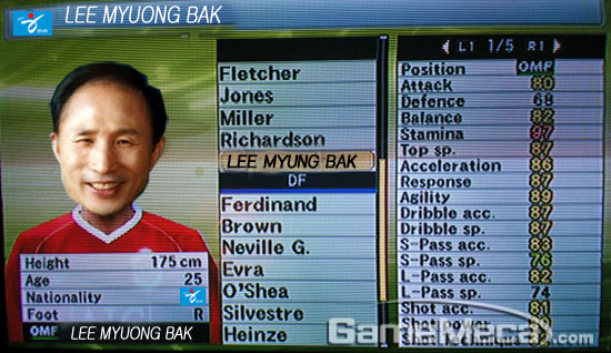 ▲ 개개인의 능력치가 위닝처럼 표기된다