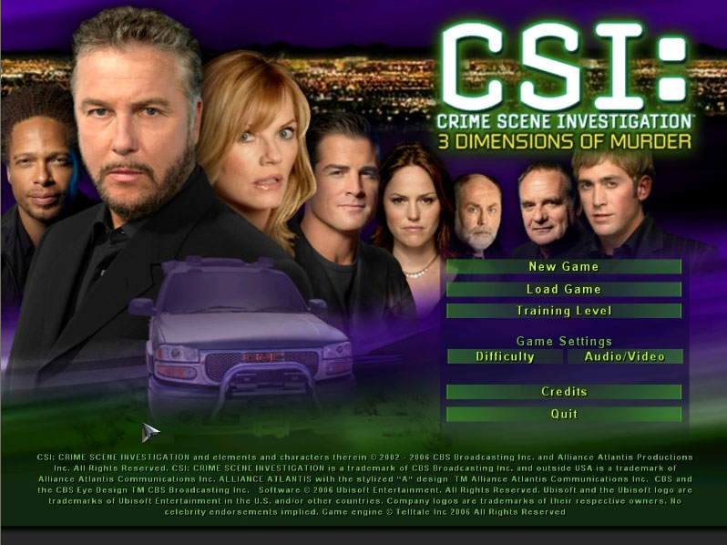 CSI 라스베가스의 과학수사대가 되어 보는 어드벤처 게임이다. 일반적인 어드벤처 게임과 시스템은 다르지 않지만 선망하던 CSI의 과학 수사를 이 손으로 해볼 수 있다는 점은 팬들에게 큰 만족을 주었다. 처음엔 조금 위화감이 들지만 시리즈를 거듭하면서 점점 더 리얼한 그래픽을 보여 준다. PC용 게임에서 XBOX용으로 발매되면서 더 리얼한 범죄현장을 보여줄 것으로 기대된다.