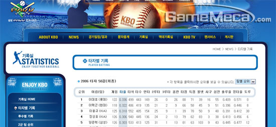 ▲ KBO 홈페이지에 공개돼 있는 프로선수들의 기록 |