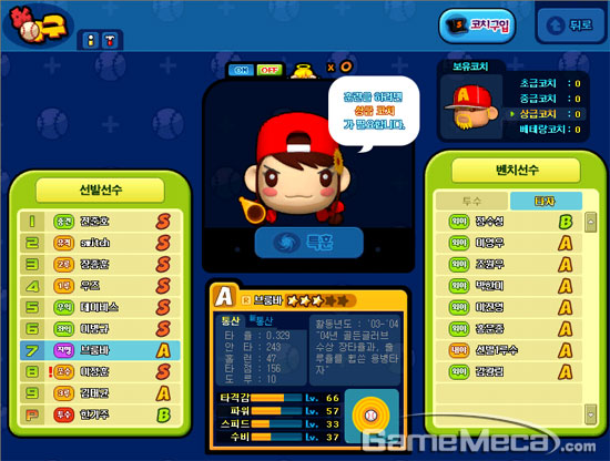 ‘슬러거’는 고교야구를 시작점으로 한 만큼 고등학교를 갓 졸업한 시점을 추측해 데이터를 적용했다. 그래서 절대적으로 비교해 보면 세 게임 중 초기 능력치가 낮다. ‘슬러거’에선 장타를 얼마나 많이 치느냐에 따라 파워가, 안타를 얼마나 많이 만드느냐에 따라 정확도가 높아지며 게임 수와 연습에 의해 구질의 종류가 많아지고 그 능력치도 발달하게 된다. 현실과 비슷한 매커니즘을 지닌 육성 시스템이다.