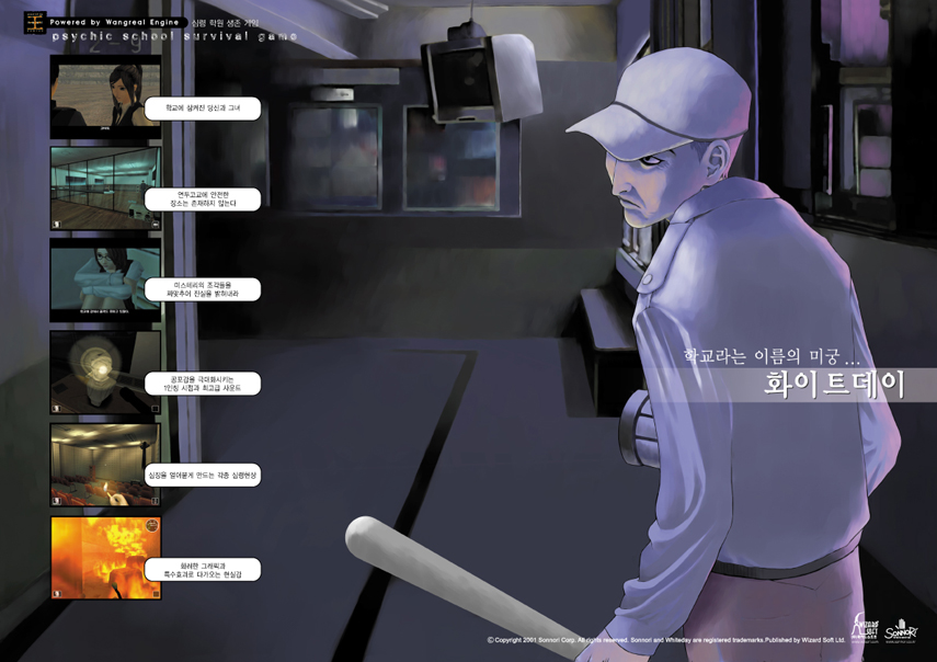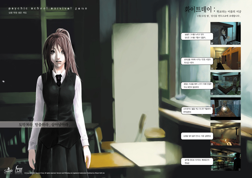 ▲ 손노리의 어드벤처 게임 '화이트데이'. 이 작품은 자체개발 엔진인 '왕리얼 엔진'과 짜임세 있는 스토리, 한국적인 공포를 잘 담아내 극찬을 받았다. 하지만 패키지 시장 침체와 고질적인 불법복사 문제로 성공을 거두지 못한다. 손노리는 화이트데이를 계기로 '패키지 시장에서 전면 철수'를 선언한다 |