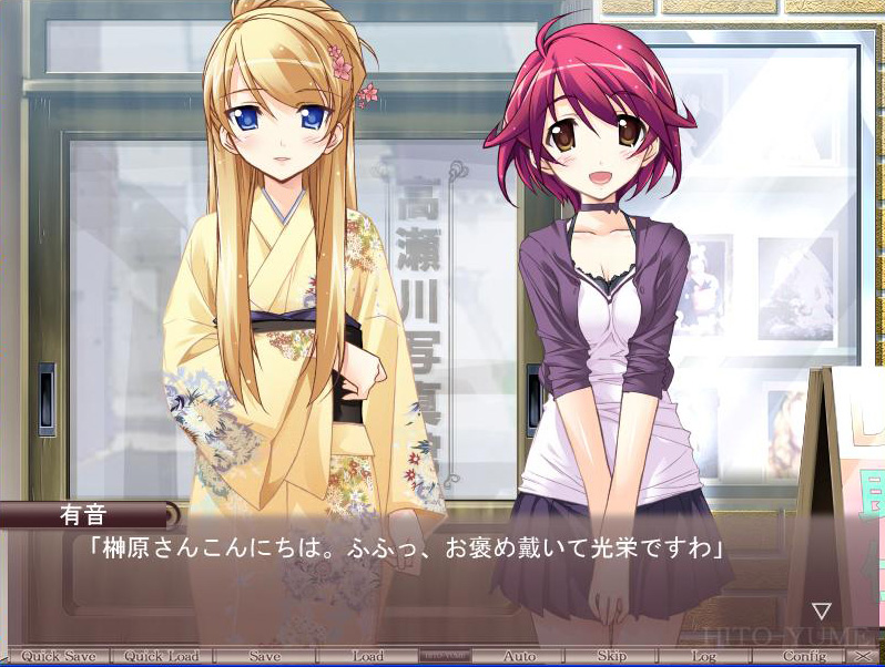 역시 나날이 손도장 찍어내듯 미소녀 게임들이 줄기차게 나오데, 신생 개발사 들은 눈에 안 띄는 것 같다. 지금 소개하는 스타링크도 그 중 하나가 아닐까 싶다. 물론 그들이 내놓은 신작 ‘히토유메’는 상당히 많은 관심을 받는 것 같다. 우선은 깔끔한 일러스트들과 애니메이션 오프닝이 상당히 눈길을 끈다. 특히 오프닝은 시원한 여름보다 포근한 여름을 전달해주는 듯 하다. 게임 속 주인공 ‘류이치’는 마지막 여름방학을 일상처럼 마을의 이곳 저곳을 돌아다니며 사진을 찍고 있었다.