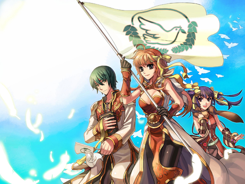 ▲ 환상적인 분위기의 신전, 연약한 엘프 미소년, 흩어지는 날개, 꼭 잡은 두 손까지! 과감한 야오이 이미지의 차용이다.