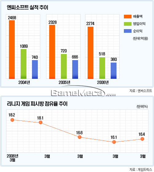 엔씨소프트는 2004년을 기점으로 회사의 밑을 받치고 있던 ‘리니지’ 시리즈의 수입이 감소하며 해가 갈수록 매출, 영업, 순이익이 감소하는 모습을 보였다. 일각에서는 ‘리니지’의 수명이 얼마 남지 않았다는 관측이 나오기도 했으며 이와 함께 엔씨소프트의 하락세가 단기적이 아니라는 전망도 나오기 시작했다.