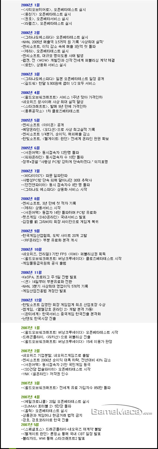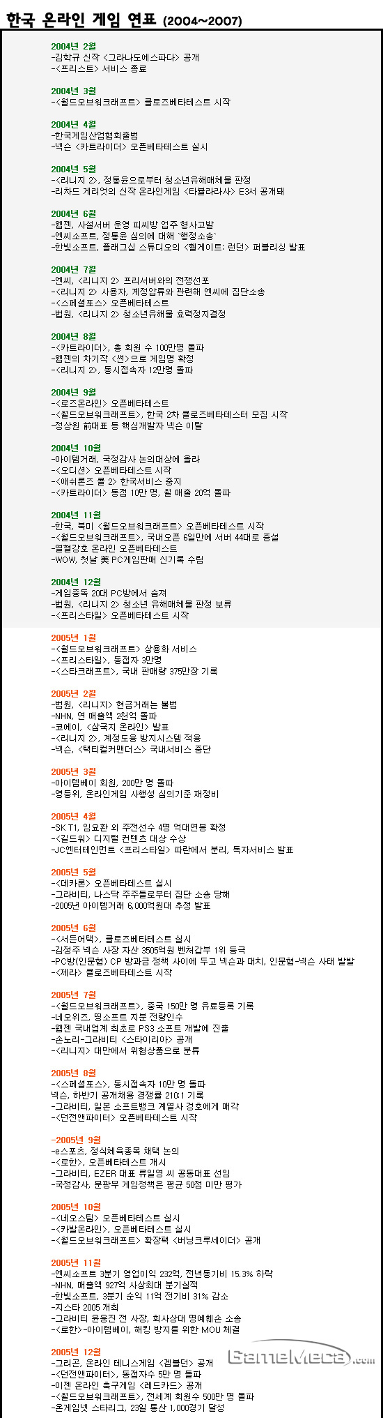 다음 페이지에 한국 온라인게임연표(2004~2007)가 이어집니다