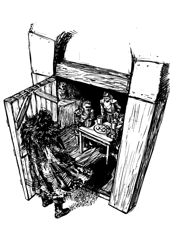 덜거덕거리는 덧창을 닫으며 요한은 걸레질을 시작했다. 달이 올라 온화한 빛을 뿌릴 때면 항상 그렇듯 드워프 전사들이 찾아와 맥주를 마셨다.