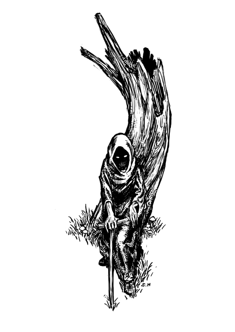 쇠를 긁어대는 듯한 목소리로 시커먼 로브를 뒤집어 쓴 노파가 어둠 속에서 불쑥 튀어 나왔다. 작달막한 키였지만 등장만으로도 기사 멕갈프는 놀라 얼굴이 허옇게 질렸다.