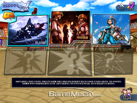 생성한 캐릭터는 스트라이커로 무공이나 특수 능력을 쓸 수 있게 되고, 한 팀을 이룰 멤버는 흑풍회, 벽풍칠도, 유선 제독부 중에서 고를 수 있다. 이 역시 만화를 봤다면 익숙할 것이다.