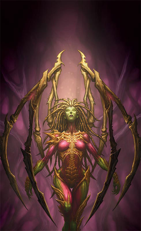 Tanya는 암살자와 같은 사람이었고 난폭한 캐릭터였습니다. 그리고 우린 맵에 유령 캐릭터를 사용하던 어느 날 이런 대화를 나눴답니다.‘하하, 이 얼마나 웃겨. 토냐 하딩(Tonya Hardin)과 낸시 케리건(Nancy Kerrigan)이 아이스 스케이팅 완패의 주역이라는 게 말이야. ‘하하, 우리가 이 맵에서 케리건이라는 이름의 무지막지한 암살자를 만들 거라니 정말 웃기잖아?’케리건은 정말 버려지는 캐릭터였지만 얘기를 계속하면서 자리를 잡게 되었고 그녀의 얘기로 계속 돌아오게 되었답니다. 케리건의 비중은 대단했어요. 맹스크와 레이너, 그리고 시선을 끄는 이 케리건이라는 캐릭터 사이에 삼각 긴장 구도가 정말 멋지게 구성되었죠. 결국, 케리건이 배신당하고 칼날 여왕으로 거듭난다는 이야기는 꽤 늦게 게임에 들어갔습니다. 칼날 여왕은 원래 이야기 구도상에는 없었습니다만 캠페인의 마지막 긴장 구도에 들어가게 되었습니다. 우리가 출시하려는 내용과 사람들이 고수하는 게 항상 필수적으로 처음부터 정의될 필요는 없다는 사실을 보여주는 또 다른 증거였습니다. '스타크래프트'를 보자면 칼날 여왕이 핵심 내용 중 하나일 거라 생각하시겠지만 실은 나중에 부가하여 덧붙인 내용입니다.