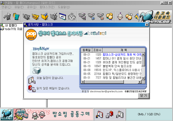 그러나 이런 웹 스토리지 시장에 그래텍의 ‘팝폴더’가 등장하면서 상황은 급변합니다. 본래 ‘팝폴더’는 가상 데스크탑인 ‘팝데스크’의 일부로 설계된 프로그램이었습니다. ‘팝데스크’는 인터넷 브라우저 만으로 문서 작업이나 파일 전송을 사용할 수 있도록 만들어진 일종의 ‘사무용’ 서비스였지요.