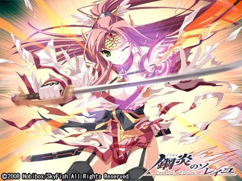‘백은의 솔레이유 - 운명의 계승자’의 후속작입니다. 현실과의 평행 세계인 정령과 마법이 존재하는 21세기의 요코하마를 배경으로 하는 카드 배틀 미소녀게임(!)입니다. 주인공과 파트너인 아가씨가 적들과 싸우는 것을 주 내용으로 하고 있다는 점에서는 전작인 ‘백은의 솔레이유’를 계승하고 있지만, 이번에는 멀티 엔딩이 추가되었다고 하네요. 거기에 미소녀 게임답게 전투에서 지면 파트너의 XX가… 이번 ‘강염의 솔레이유’에서 주인공과 히로인이 어떤 모험을 벌일지 기대해 봅시다. 카드 배틀을 좋아하는 분에게는 재미있을(지도 모르는) 미소녀게임.