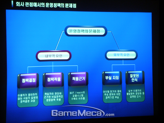 회사 입장에서도 문제는 마찬가지다. 아이템현금거래 등 주요 문제에 대한 법의 판단은 여전히 모호하고, 일부 이용자의 불법행위에 대한 정당화 등 문제를 악화시키는 외부적 요인이다.