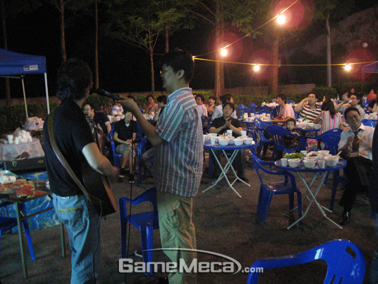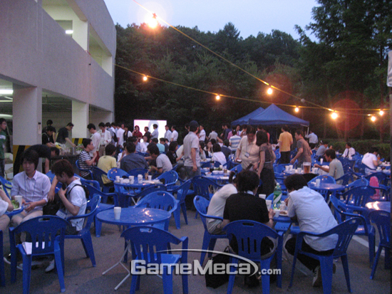 개별 섹션이 끝나고, 행사의 하이라이트인 야외 저녁 행사가 이루어졌다. 바비큐 파티가 벌어지고 삼삼오오 테이블로 사람들은 미뤄뒀던 이야기보따리를 늘어놓았다. 나 홀로 게임기자 자격으로 참석한 나는 귀를 쫑긋 세우고 이야기에 귀를 기울였지만, 기대만큼 특종(?)을 얻어낼 수는 없었다.