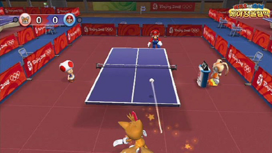 세가가 이제야 부랴부랴 공식게임을 내놓았다면 과거 세가와 함께 게임계를 양분했었던 역사를 지닌 닌텐도는 요즘 대세로 행세하는 만큼 한 발 빨랐다. 콘솔게임 중에서는 가장 먼저 ‘마리오&소닉 베이징 올림픽’을 Wii와 DS로 연달아 출시하며 먼저 단물을 빨았다. 역시나 강력한 연타를 중시하는 게임 답게 위리모콘을 팔 빠지게(혹은 모양빠지게) 휘두른다거나 터치펜으로 터치스크린에 구멍날 정도로 문지르는 종류의 게임이다. 팔 아프므로 장시간 플레이는 무리가 따른다는 기본적인 특징도 지니고 있다. 그까짓 것으로 무슨 팔이 아프겠느냐 하시는 독자님들. 안해봤으면 말을 하질 마세요. 또한 잊지말아야 할 것은 마리오와 소닉도 공식마크를 달고 나왔다는 사실이다. 20여종목의 플레이가 가능하며 실제 선수와는 다른 익숙한 캐릭터들이 펼치는 게임들이 특히 어린이와 여성들에게는 더욱 어필할 수 있을 것으로 보인다.