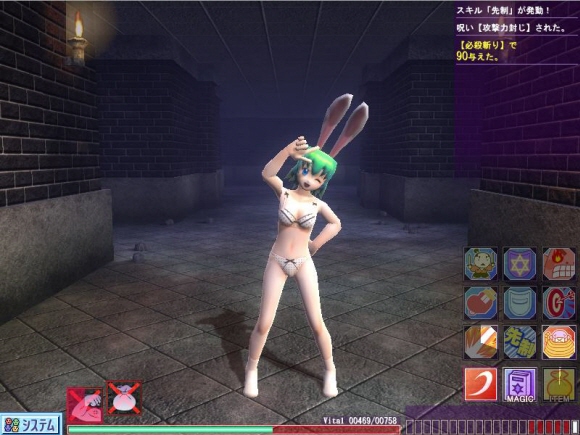 둘째, ‘부여사’의 존재다. 던전에서 사냥하다보면 몬스터에게서 아이템을 얻을 수 있는데, 시나리오를 진행하다보면 히로인 ‘하즈미’가 공방에서 ‘부여마법’으로 주인공의 능력을 올려준다. 무기에는 슬롯이 존재하며, 이 슬롯은 이후 아이템을 통해서 늘릴 수 있다. 부여마법을 통해 마법도 사용할 수 있으며, 마법이 없이는 진행할 수 없는 부분도 존재하니 꼭 알아두도록 하자. 아이템 부여에 따라 얻을 수 있는 스킬도 존재한다.