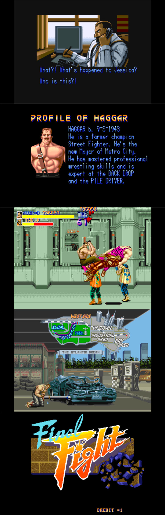 ‘캡콤’의 ‘파이널 파이트’. 필자는 이 게임을 초등학교 시절 오락실 아주머니가 게임기 위에 ‘팔구’라고 한글로 써놔서 ‘팔구’라는 이름으로 알았었다. 당시 필자는 캐릭터 중 ‘해거’를 보고 ‘파일드라이브’로 남의 차를 망가뜨리는 고약한 마초 중년으로 알겠지만 사실은 시장님이다. 평소에는 시민을 위해 일하지만, 급하면 멜빵바지 하나 입고 거리로 나서는 ‘해거’ 시장님. 펀치가 느려 ‘파이널 파이트’의 전매특허기술 ‘와리가리’를 사용할 수 없어 외면 받았지만, 필자는 해거로 자주 플레이했다. 쌈질이나 하러 다니는 ‘코디’나 날라리 닌자 ‘가이’에 비해 ‘해거’는 시장이란 훌륭한 직업이 있지 않은가!