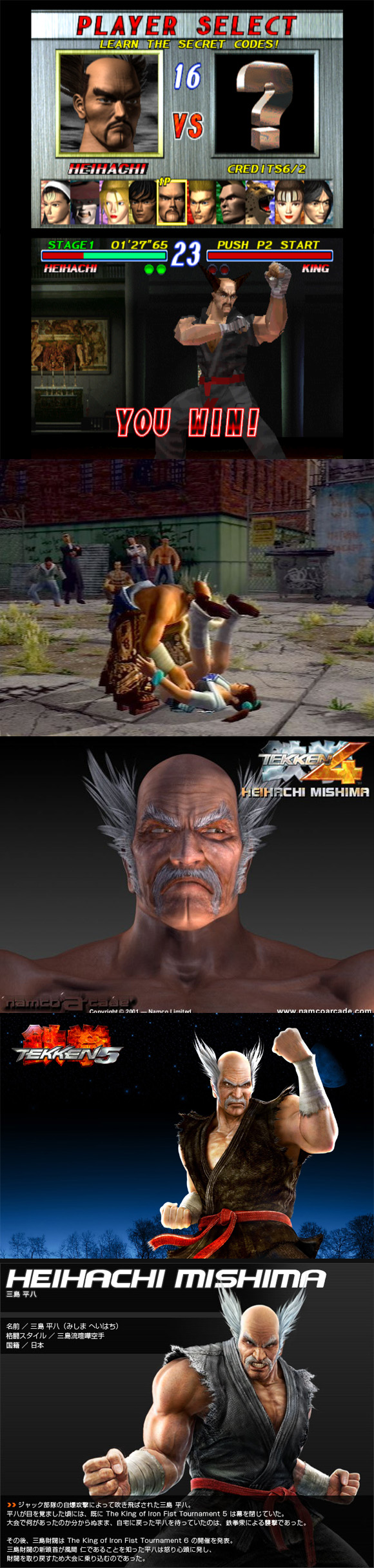 ‘철권’ 시리즈에서는 수 많은 중년과, 노인(?)이 등장한다. 그 중에서 ‘X파워 붕권’으로 지속적인 인기를 얻고 있는 ‘폴’과, ’헤이하치’를 살펴보도록 하겠다. 사실 ‘헤이하치’는 ‘철권2’까지는 중년으로 볼 수 있지만 ‘철권3’에 와서는 70세가 넘어가서 사실상 노인을 떠나 ‘신선’이라고 밖엔 볼 수 없다(그 나이에 그런 힘을 낸다는 거 자체가…). 폴은 ‘철권2’에서 ‘쿠마’와 싸우다가 대회에 출전을 못한 것이 한이 되었는지 아주 폭삭 늙어버렸다. 아아 인생이여.