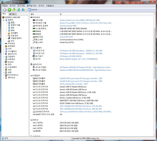 사양 보는 법이 그렇게 어려운 것도 아니니 이 기회에 배워두자. PC사양을 가장 빨리 파악할 수 있는 방법은 역시 시스템 분석 유틸리티를 사용하는 것이다. 대표적인 프로그램으로는 ‘Everest’가 있는데, 설치 후 실행하는 것 만으로도 자신의 컴퓨터가 어떤 부품을 사용하고 있는지 세세하게 알 수 있다. 어렵고 무서운 영어가 아니라, 친절하게 한글로 표시해주므로 ‘Everest’정도는 PC에 깔아두고 자신의 사양을 체크해 보도록 하자.