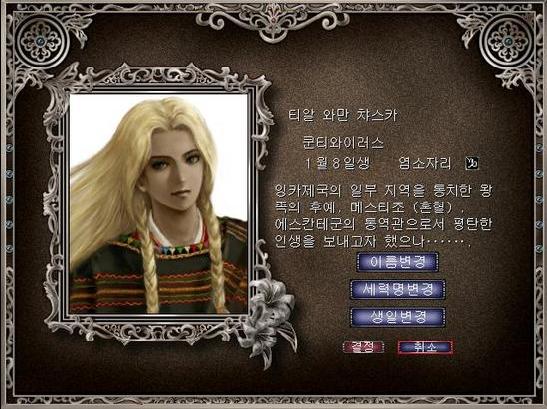 티알 와만 챠스카 : 금발의 ‘메스티조(혼혈아)’로 잉카 제국의 후예인 여성 캐릭터입니다. 열강들에게 참략받아 나라를 이른 원주민들만의 국가를 세우고 열강들에게 인정받기 위해 패자의 증표를 찾아 나서게 됩니다.