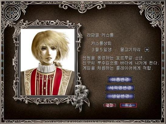 알 베자스 : 고아 출신으로 열심히 일해서 자수성가하는 모습을 볼 수 있는 캐릭터입니다. 이 게임에서 유일하게 이슬람 세력인 터키 지역(오스만투르크) 출신 캐릭터입니다.