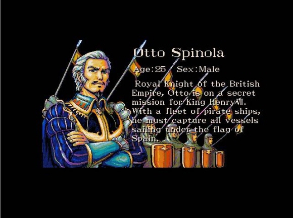 옷토 스피노라 : 영국의 지원을 받는 사략선대의 지휘자입니다. 스페인의 무적함대와 싸워야 하기 때문에 전투 위주로 키워야 하는 캐릭터입니다.