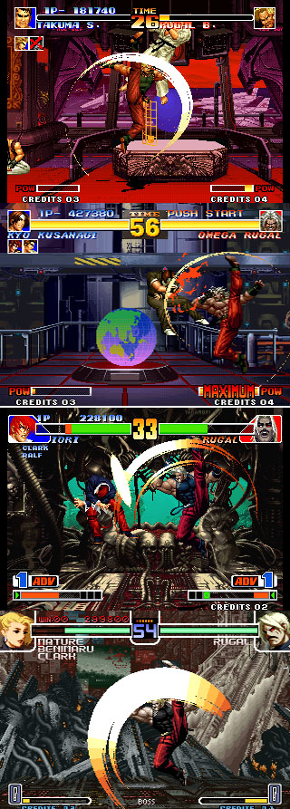 ▲ 루갈하면 항상 생각나는 ‘제노사이드 커터’. 위부터 KOF 94, 95, 98, 2002.