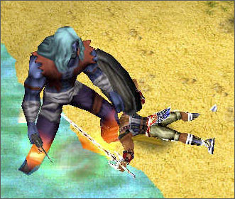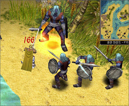 샌드 힐을 흐르는 모래강을 따라 한참을 달리다 보니 몬스터들이 하나둘씩 떨어져 나가기 시작했다. 한숨 돌리고 나니 아래쪽으로 다른 입구가 보이기 시작했다. 한번 오셔너스를 온 경험이 있긴 했지만 샌드 힐에서 바로 포르터스 시티로 넘어갔기 때문에 아직 오셔너스의 지리를 제대로 파악하지 못하고 있었다. 또 한번의 호기심이 발동하기 시작했다. 어차피 여기까지 왔는데 어딜 못 가겠냐마는 왠지 불안한 마음을 추스르며 들어간 곳은 코랄 비치!! 이름이 말해주듯 푸른 바다가 펼쳐진 아름다운 곳이지만 그 곳에 자리를 트고 영역을 점유하고 있는 몹들의 무서움은 상상을 초월한다. 몹들의 위력은 생각보다 강했다. 스콜피온의 독침술은 상대도 되지 않을 정도의 물 덩어리가 뭉쳐 형성된 워터 크리처의 물 싸대기 공격과 모턴을 잘 준다고 소문난 해파리 모양의 몬스터인 플로팅 젤리의 전기통닭 공격은 무모한 나에게도 너무나 무서운 존재들이었다. 수십개의 포션을 먹어가며 이들과 한판승부를 벌였지만 포션은 금방 바닥나기 시작했고 또 한번의 줄행랑을 치기 시작했다. 얼마나 도망 쳤을까 왠 미꾸라지 같은 것이 하늘을 둥~둥~ 떠다니는 것이었다. 무한 호기심이 이를 놓칠 수 없지. 몰래 뒤를 쫓아가기 시작하는데 갑자기 이것이 급차선 변경 불법 유턴을 하더니 무서운 이빨을 드러내며 덤비기 시작하는 것이었다. 그것도 한 마리가 아닌 여러 마리가 한꺼번에 말이다. 순간 당황한 나머지 움찔했지만 도망가는 것도 한두번이지 잃어버린 자존심을 회복하기 위해 칼을 꺼내들었다. 바다를 가로지르며 뿜어낸 검기에 첫 번째 고스트 바이터가 쓰러지고 두 번째 몹을 쓰러뜨리려는 순간 기하급수적으로 몰려드는 몹들에게 그만 아까운 경험치를 내어주고 말았다.