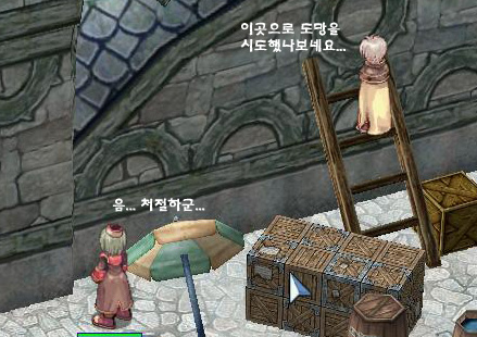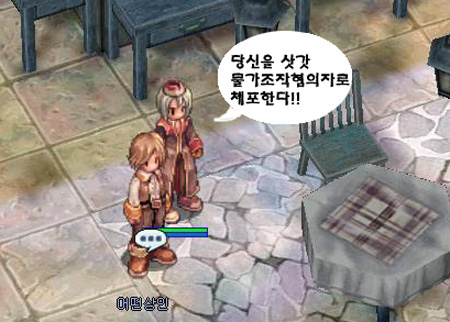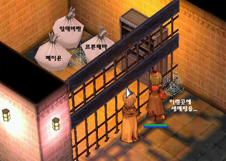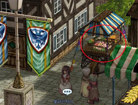 프론테라마을 남서부 지역에 위치하고 있는 노점 NPC들이 의심이 되어 이들을 집중 추적했다. 꽃파는 처녀는 말그대로 꽃을 팔고있었다. 고기상인은 고기를 팔고 있었으며 과일상인도 진열해놓은 포도나 참외 등은 팔지 않았지만 역시 과일을 팔고 있었다. 생선장수는 항상 자리를 비우고 있어서 누가 생선 한 마리를 집어가도 알 길이 없을 것이다. 더 황당한 것은 바로 선물품상인이다. ‘붉은색 액자‘, ’푸른색 도자기‘ 등을 파는 선물품 상인의 노점에는 이런 선물품 등은 보이지도 않고 왠 빵만 진열되어 있다. -_-; 빵만 잔뜩 진열해놓았는데 선물품들은 어디서나서 선물품을 판다는 얘기일까? 설마 빵속에 숨겨놓은 것은 아니겠지....