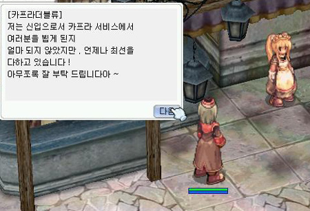 항상 내가 이 온라인기행을 통해서 강조해온 부분이지만 온라인게임의 재미는 제작자가 만들어주는 것도 있지만 게이머들 스스로가 만들어갈 수 있다는 것을 기행을 보는 많은 사람들에게 꼭 알려주고 싶다. 가끔씩 레벨업에 지쳤을 때는 이마을 저마을을 돌아다니면서 많은 NPC들과 대화를 나눠보자. 상당히 재밌는 얘기도 들을 수 있으며 색다를 경험을 할 수 있을 것이다. 이외에도 각자 길드원을 모아서 이벤트를 해본다든가 여러 가지 새로운 것을 하면서 하나의 ‘문화’를 창조해나가는 것도 게임을 즐기는 법이라 할 수 있을 것이다. 온라인 게이머들이여. 라그나로크 게이머들이여. 게임의 재미를 스스로 만들어가보자!!