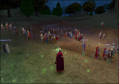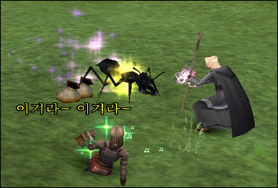 열렙의 황제 메로메로는 그 특유의 노련미로 내가 똥다리에 도착해서 자신을 찾아 헤메는 동안 언덕 위에 올라가 날 가만히 지켜보고 있었던 것이다. 어쩐지 뒤통수가 가렵더라니… 난 메로메로에게 그렇게 짧은 시간 어떻게 광렙을 할 수 있었는지 궁금할 따름이었다. 그러나 남자가 쫀심이 있지~! 그걸 어떻게 꼬치꼬치 캐물어. 클레릭은 개미를 빨리 잡나? 아니면 늑대한테 보너스 데미지가 있는건가? 여러 가지 생각이 머리 속을 뒤덮을 무렵 갑자기 어디선가 파티 초대메시지가 날아왔다. 메로메로였다. 메로메로: “자식 혼자하니까 렙이 안오르지…” 컥! 내 게임 스타일을 어떻게 알아챈거지. 사실 레벨이 낮을 때 이런저런 곤충을 잡으며 재미를 쏠쏠하게 봤던 난 ‘에이 렙업도 별거 아니네~’라며 코웃음을 쳤지만 레벨이 올라갈수록 혼자서 게임을 플레이하기란 여간 어려운 일이 아니었다. 이 게임이 무슨 포션이 있는 것도 아니고 한놈 한놈 잡을 때마다 떨어진 체력을 회복하는 시간이 라면 하나 끓여먹을 정도가 되니 당체 혼자서 게임을 즐기다간 제 명에 살아남지 못할 것이라는 생각까지 들었다. 메로메로: “짜샤 나만 따라와 열렙시켜줄께 으하하하” 난 자존심이 상했지만 별 수 없이 메로메로의 뒤를 따를 수밖에 없었다. 타도 멜로우를 부르짖으며 열렙모드에 돌입한 내가 성공하기 위해선 어쩔 수 없는 선택이 아닌가? 적과의 동침이다. 파티구성창을 바라보니 나를 합하여 모두 8명의 풀파티가 구성되어 있었다. 2명의 암스맨과 1명의 팔라딘, 2명의 클레릭, 그리고 2명의 위저드와 나. 얼마나 무서운 넘을 잡길래 이렇게 개떼처럼 모여가는걸까 라고 생각하는 순간 이미 7명의 파티는 저 멀리 언덕쪽으로 사라지고 있었다. -_-; “나두 데려가 ㅠ.ㅠ 엉엉”