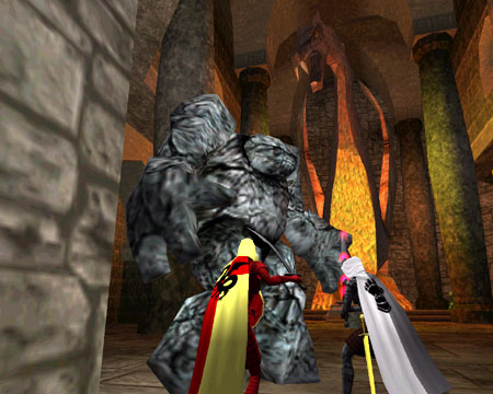 어쨌든 시간은 과거로 흘러흘러 첫 RvR을 나갔던 러프의 기억으로 되돌아갔다. 사람들에게 이렇게 저렇게 물어서 겨우 이메인에 당도한 그 때. ‘나도 전쟁터에 나왔다!’라고 어디에 외치고 싶은 마음뿐이었지만 주위엔 전쟁에 이골이 난 사람들만 즐비한터라 아무 말도 할 수 없었던 그 때였다. 삐까뻔쩍한 장비를 온 몸에 걸치고 날 왠지 거추장스럽다는 듯이 쳐다보는 그들. 군대에 갓 전입온 이등병의 심정이었지만 별 수 있는가~!?