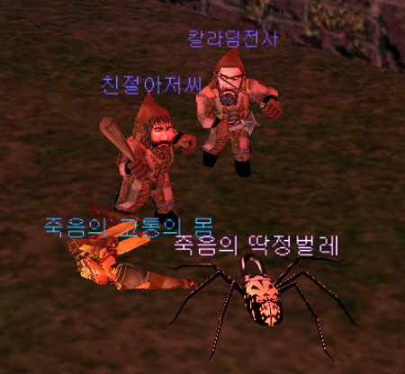 친절아저씨: 전사님! 존라인으로 도망가세요~ 퍼벅! 으억~!! 한 순간에 그의 체력이 보라색으로 바뀌고…. 저 멀리 어둠 속으로 피로 얼룩진 드워프 시체 한 구가 보이는 것이었다. 친절아저씨: 우웩! 이번에는 그들이 나를 향해 달려오는 것이 아닌가. 걸음아~ 나 살려라. 퍽! 퍼벅! 존라인을 몇 미터 앞에 두고 체력바가 바닥을 치기 시작했다.