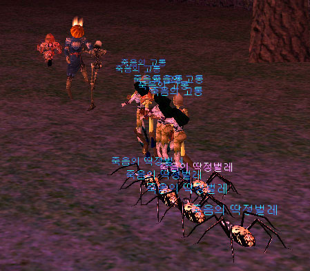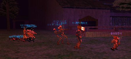 친절아저씨: 저를 잘 따라오세요. 제가 "도망!"이라는 말을 하면 뒤도 보지 말고 존라인 쪽으로 도망가세요. 칼라딤전사: 네~! 우리는 조심스럽게 왼쪽 구석으로 가서 자리를 잡았다. 저 멀리 어둠 속에 딱정벌레, 해골, 좀비, 그리고 호박귀신의 움직임이 눈에 띈다. 친절아저씨: 전사님, 저기 보이는 놈들 중에 딱정벌레를 가늠해 보세요. 저들은 먼저 공격해 오지는 않는데 주위에 자기 동료들이 싸우고 있으면 떼로 몰려와서 협공을 하니까 우선 근처에 오는 놈들을 조용히 잡아야 해요. 대부분의 몬스터는 죽기 전에 도망을 가는데 언데드(Undead) 몬스터는 한 번 죽은 놈들이라서 도망가지 않거든요. 물론 몇몇 언데드 몬스터는 도망을 가기도 해요. (에고;;;;; 너무 친절해도 힘들다. ^^;) 칼라딤전사: 넵. 그런데 너무 어두워서 앞이 제대로 보이지도 않고 으시시~ 하네요. 흐흐흐…. 결국 그도 이곳의 분위기에 압도당하고 있었던 것이다. 그리고 조심스럽게 한 놈, 두 놈…. 사냥은 그렇게 순조롭게 진행되고 있었다. |
