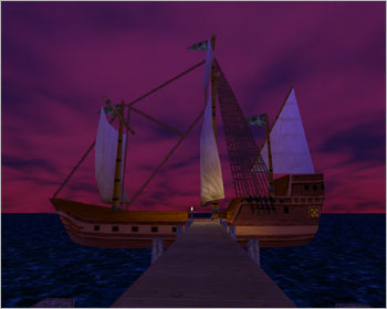 사이렌의 모습이 시야에서 사라질 무렵이면 배는 어느새 첫번째 정박지에 도착하게 된다. 이 섬에는 '미싸니엘 마르'의 사제들이 운영하는 여관도 있고, 간단한 음식물을 파는 상인도 있다. 배가 정박하고 대략 30초 정도 지나면 다음 섬을 향해 출발하므로 섬을 구경한다고 내렸다가는 다음 배가 올 때까지 기다려야 하는 낭패를 보게 된다(-_-;). 이 섬에서 북동쪽으로 가면 '아비악' 섬이 있는데 이곳도 10레벨 중반에 사냥하기에 괜찮은 장소다. 아비악들이 먼저 공격을